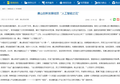· 唐山創新發展綻放“人工智能之花”